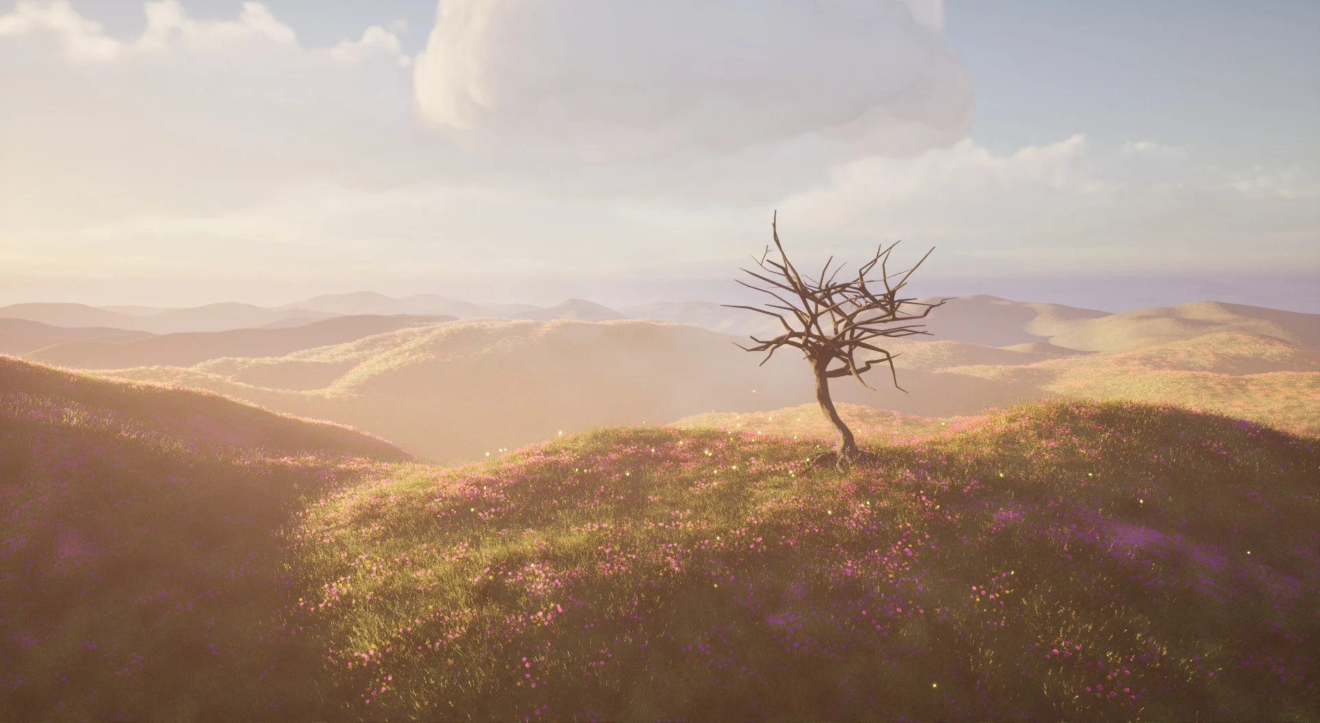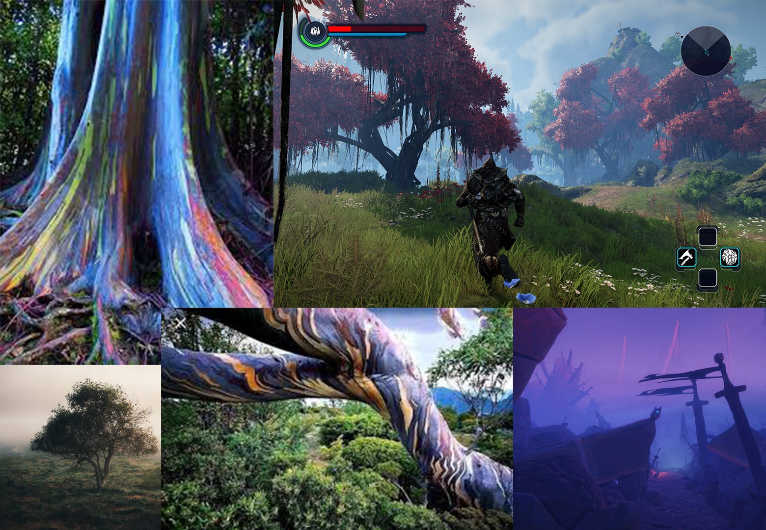 Magic Tree: All scene aspects—particle animations, tree panner material, tree model, ground PCG set up, and lighting created; Plant assets from Quixel Bridge/FAB (Unreal Engine, Blender)